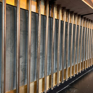Jack is an amazing creative talent and was so much fun to work with! We loved gilding the earth on the ceiling by the entrance, which leads you through to the bar area where Jack added an extension to the bar; we gilded the new this and the facia boards that were part of the upholstered velvet bar area.