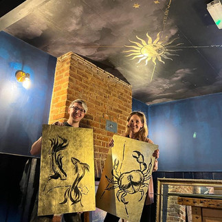We headed down to Brighton last year to work with Jack on his pub project at 'The Earth & Stars', it was a whirlwind three days! Carlie and myself added our gold leaf glamour to the interior to bring Jacks vision to life.